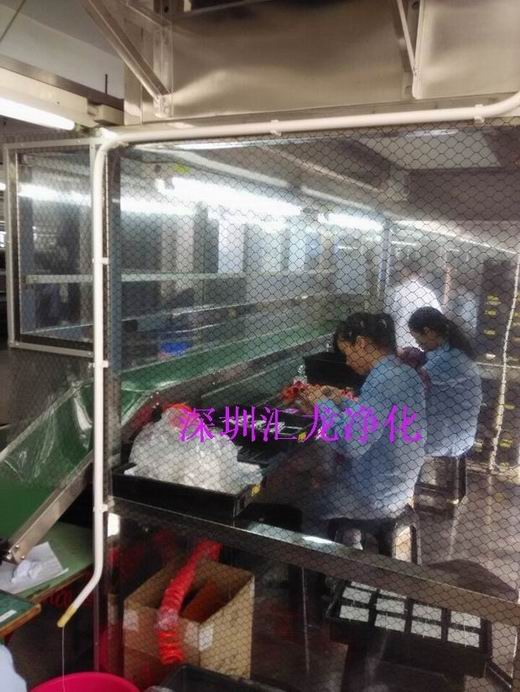 深圳市匯龍凈化公司根據(jù)客戶要求訂制各種規(guī)格貼片房貼膜房可移動(dòng)潔凈棚,包括流水線潔凈棚,不銹鋼凈化棚,小潔凈工作間。